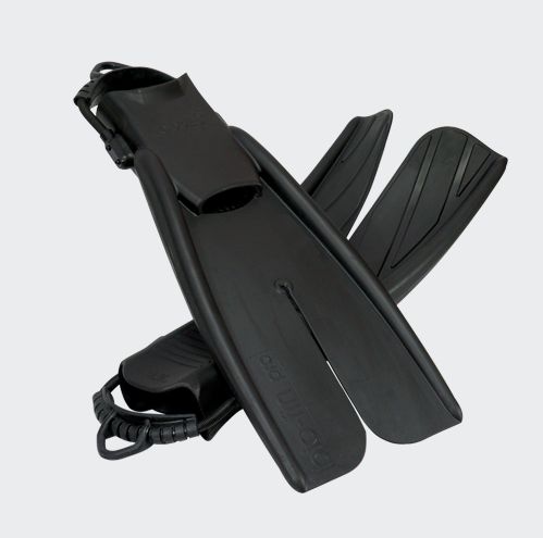 バイオフィン・プロSPの外観金属部品をすべて艶消し黒に仕上げた極限を潜るフィン。
