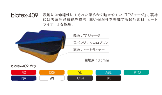 | カラー | Aカラー: ソフトラジアルBK限定 Bカラー: BK限定 Cカラー、Dカラー、Eカラー: biotex-409のカラー表から選択可能 ステッチカラー: biotex-409のカラー表から選択可能 |