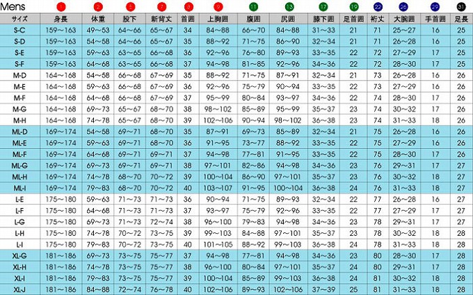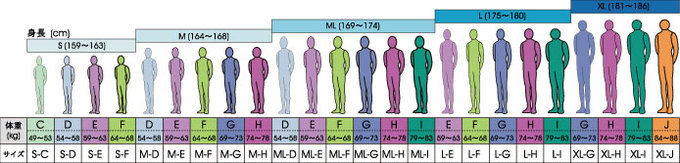 サイズはジャストバリューサイズ(メンズ24サイズ)より選択できます。首・手首サイズ、ブーツサイズにつきましては無料でオーダー対応いたします。