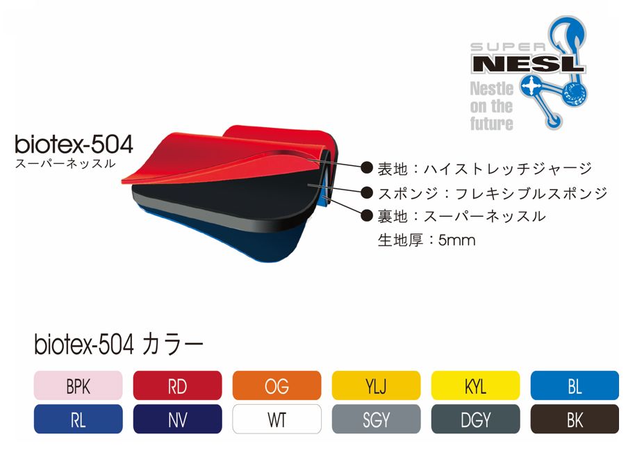 顔まわりに3FJ内スキン素材を使用し、立体7分割カットを採用。高いフィット感を提供します。使用素材は3mmと5mmの2種類から選択可能です。カラーも選択可能です。